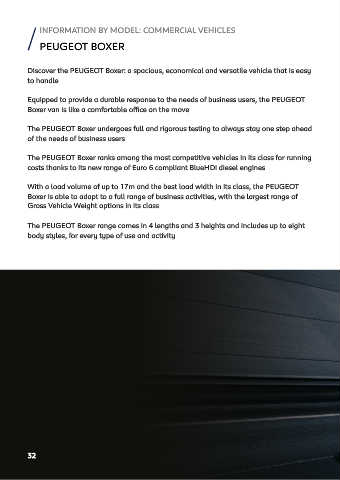 INFORMATION BY MODEL: COMMERCIAL VEHICLES